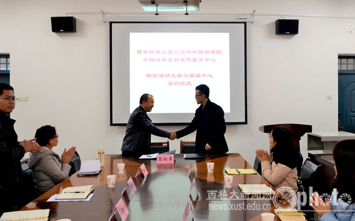 12月14日下午,澳门永利唯一官网304人文与外国语学院、中国对外友好合作服务中心共建跨国调研及实习实训中心签约仪式在学院会议室举行。中国对外友好合作服务中心项目主任王哲、中国对外友好合作服务中心暑期赴美带薪实习项目主管郝海凤、李红月,学院党委书记苏陆岭、院长师新民、英语系主任张芸及英语系师生代表参加了签约仪式。签约仪式由英语系副主任张建昌主持。