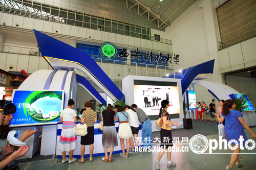 永利官网展位位于西安曲江国际会展中心A馆,展览主体颜色采用科技蓝为基调,充分彰显学校的理工学科特色,并与学校长期宣传用色相契合,形成较为统一的形象宣传效果。展览主体结构状如一瓣盛开的花朵,又如腾飞向上的翅膀,昭示着学校培育的莘莘学子如桃李遍天下,学校各项教育事业蒸蒸日上、蓬勃辉煌。展览中,两座彩虹式拱形门的搭建既寓意着学校多年来改革发展的巨大跨越,也预示着学校未来如彩虹绚烂多彩。展览由文字图片展示区、数字图像播放区、创新成果实物展示区和咨询服务区等四部分组成,通过声、光、电等现代科技手段全面展示学校办学成就和风采,对增进社会各界对学校的了解,宣传学校的招生政策,加强学校对外的交流与合作,进一步促进学校的建设和发展都具有重要的现实意义。