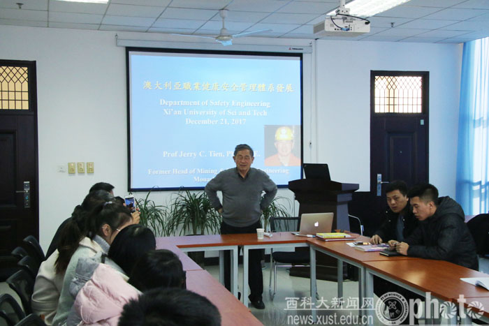 12月21日,澳大利亚莫纳什大学前采矿工程系田正仁教授应邀到永利官网安全学院作了题为《澳大利亚职业健康安全管理体系的发展》的英文学术报告。安全学院及其他学院的50余名研究生及教师聆听了报告。