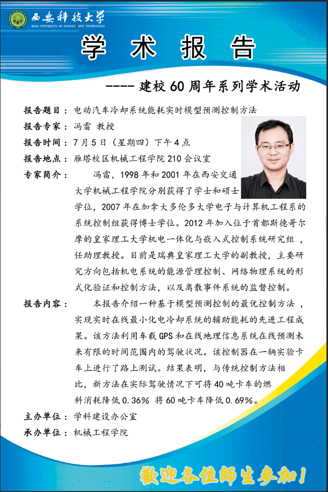 【学术报告预告】电动汽车冷却系统能耗实时模型预测控制方法