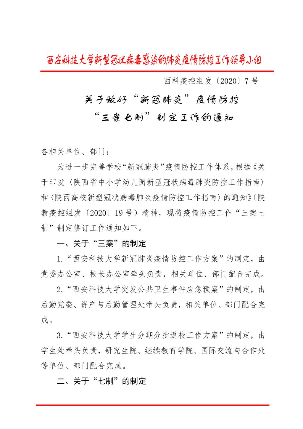 关于做好”新冠肺炎“疫情防控“三案七制”制定工作的通知(西科疫控组7号)